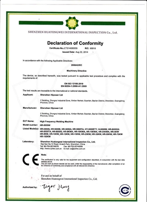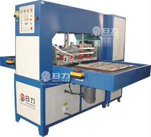★高频机振荡频率符合国际工业波段标准,由高Q值真空电子管自激振荡器产生高频电磁场,使加工塑胶在上下电极间的高频电场内,使其分子产生剧烈运动摩擦,在模具的压力下得到其熔接效果。高周波熔断机采用H型龙门结构,左右双向自动滑台,往返连续推送模具,运行高效。